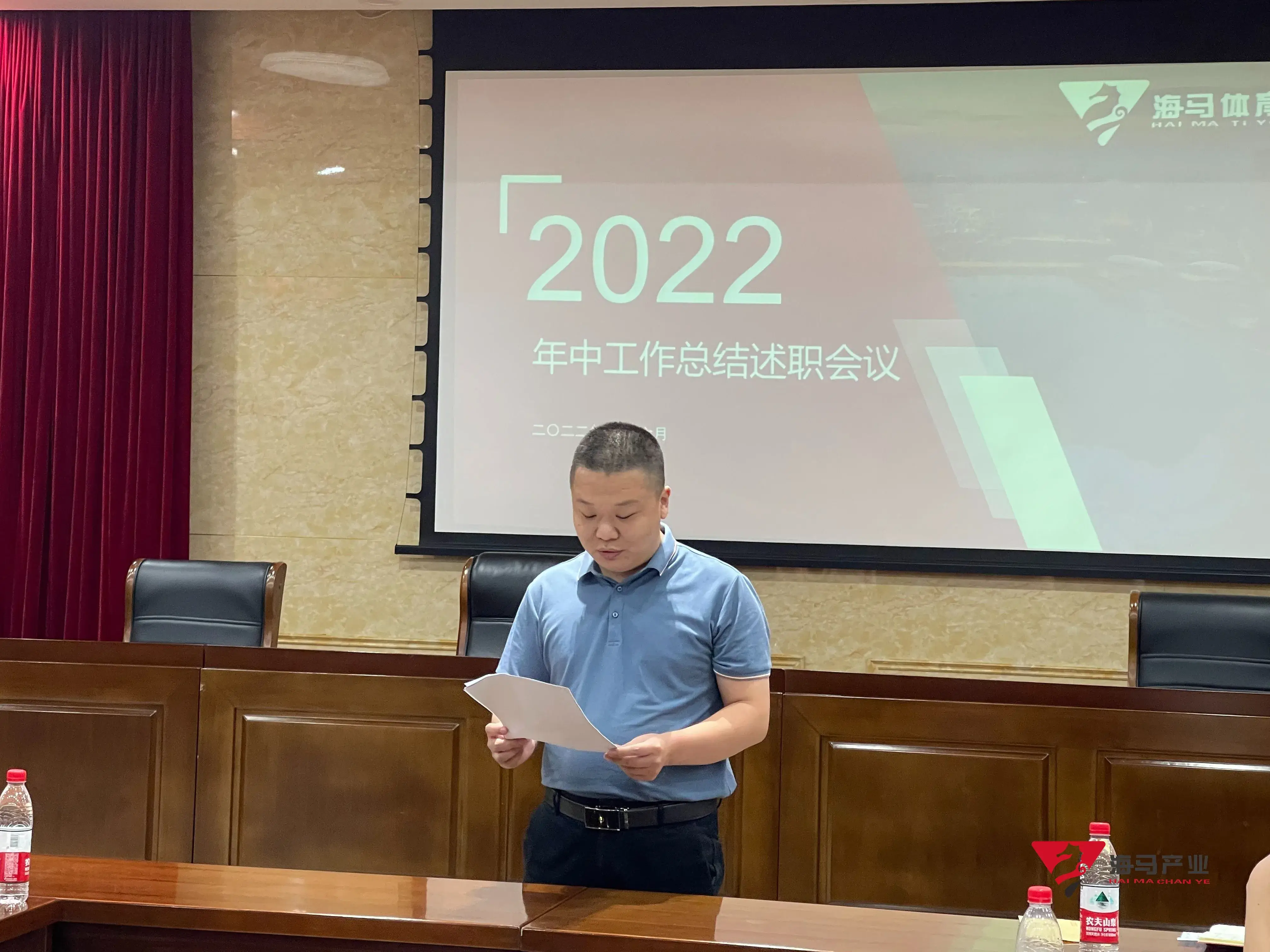 2022年6月29日下午,3377体育文化产业集团在山东省体育中心二楼会议室召开年中工作总结述职会议,会议对上半年工作成果进行了总结汇报,并就下半年重点工作进行部署。总经理王海民出席了本次会议。会议由综合管理部负责人王永健主持。